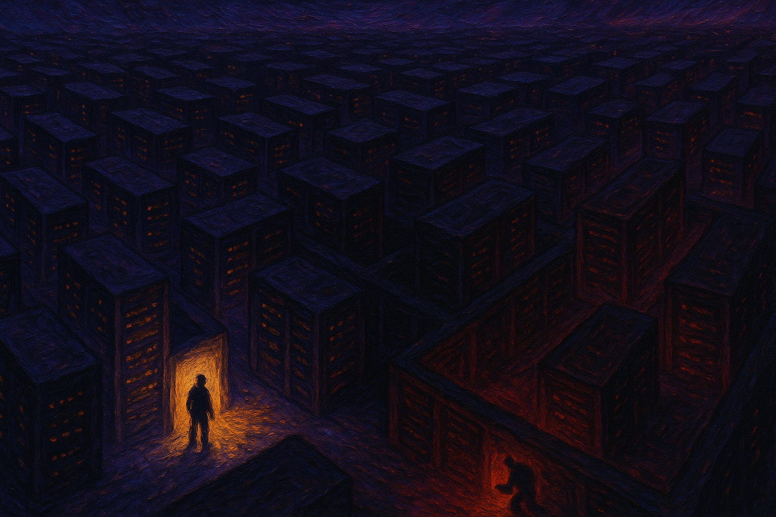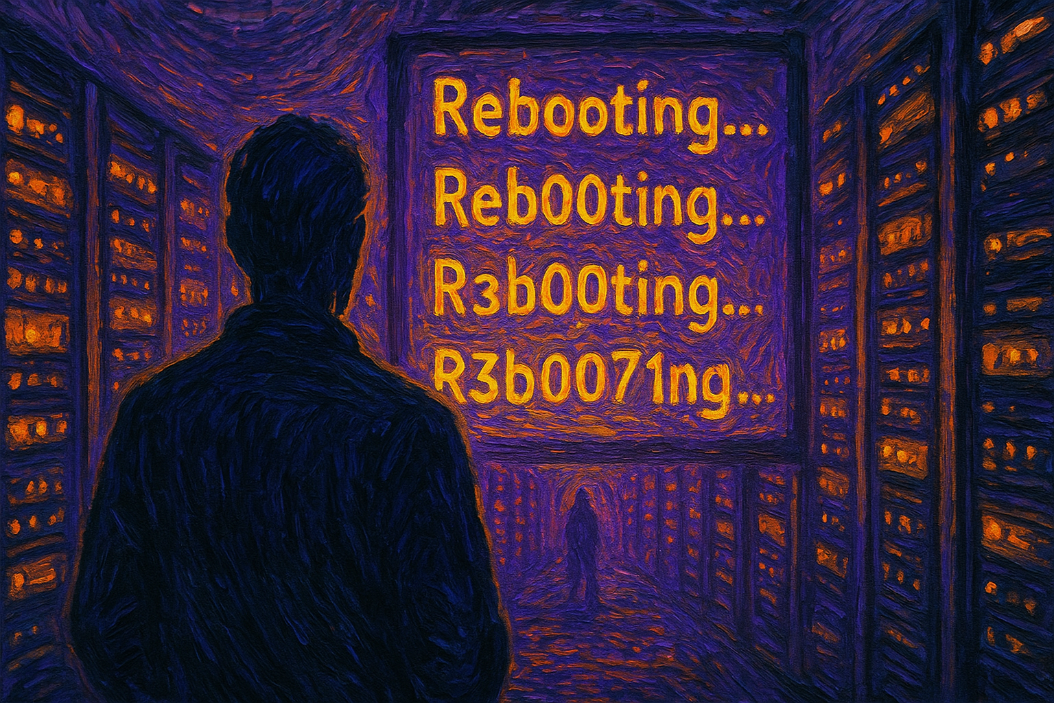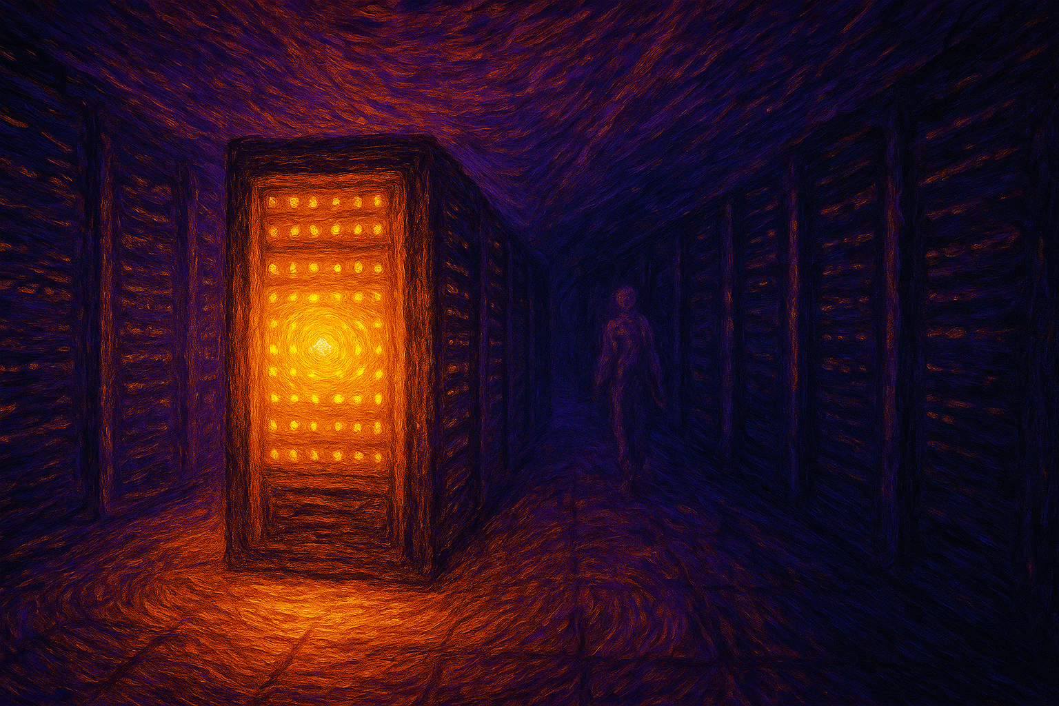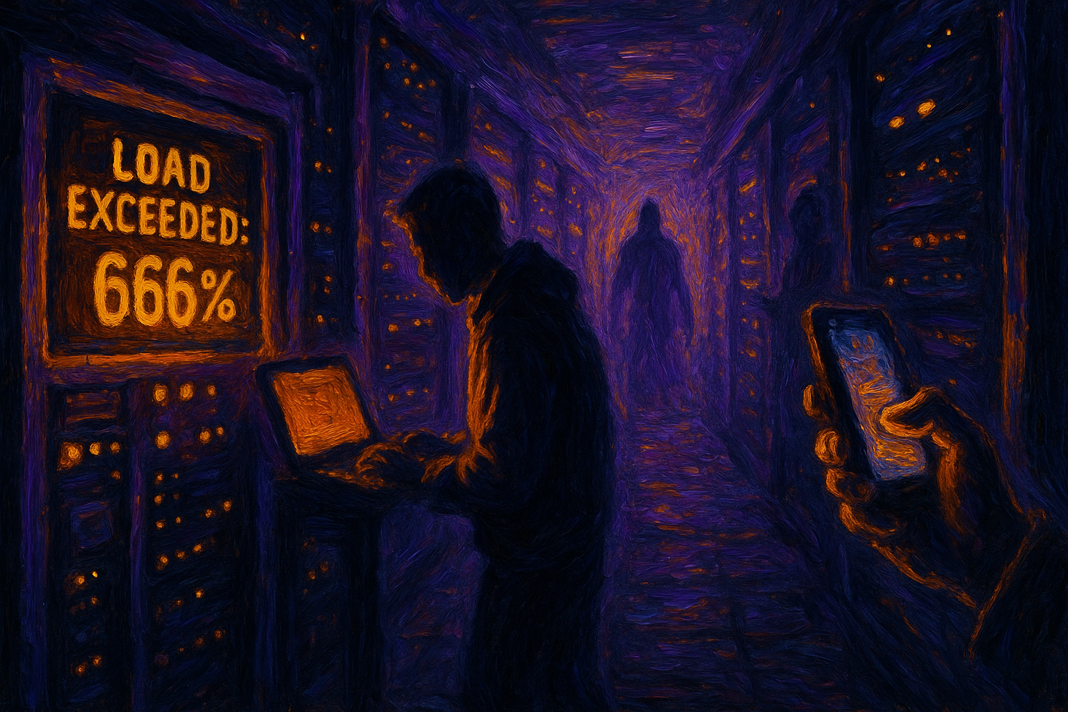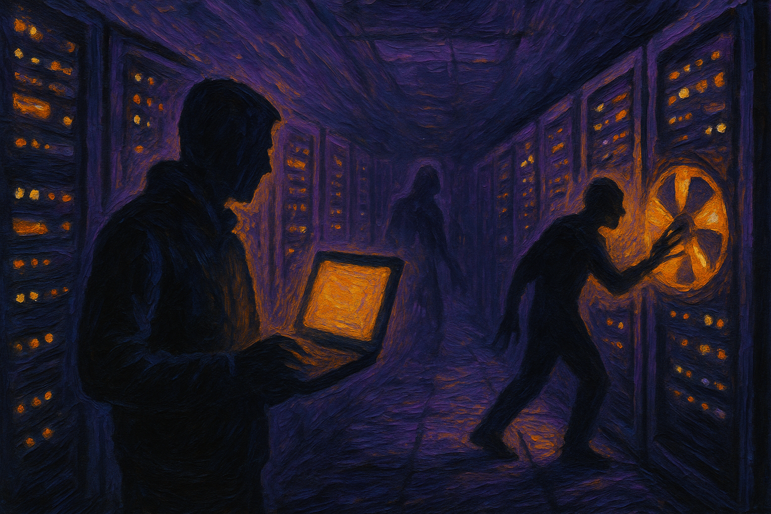 Meia-noite. Os “cinco minutinhos” no data center se alongaram: a porta bateu, a catraca travou, o zumbido dos servidores sumiu. O indicador piscou: “TESTE DE SOBREVIVÊNCIA”. Agora é só encontrar a saída… se você conseguir.